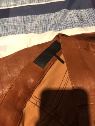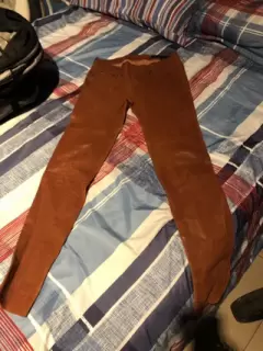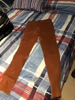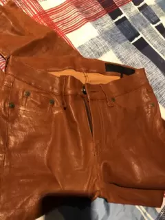 Pantalón atrecha café de cuero sin detalles, casi nuevo talla 28