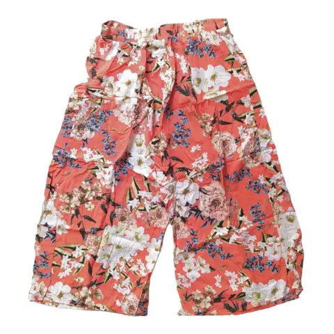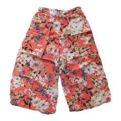 Pantalón culotte floreado pata de elefante. Pantalón culotte naranja con flores, marca Cotton on, talla XS/pp, resorte en cintura, muy ligero y fresco, con bolsas delanteras.Contorno cintura 64 cm estira hasta 76 cm.Contorno cadera 96 cm.Tiro 25 cm.Largo total 70 cm.