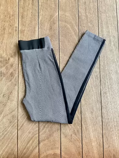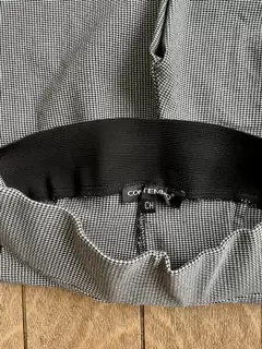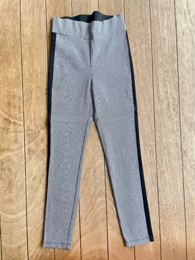 Pantalón de cuadritos con rayas laterales en color negro. Solo una puesta, sin detalles. Talla chico.