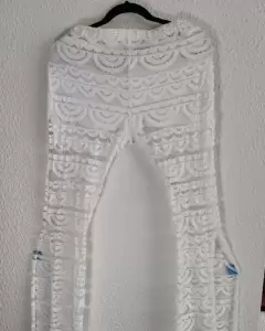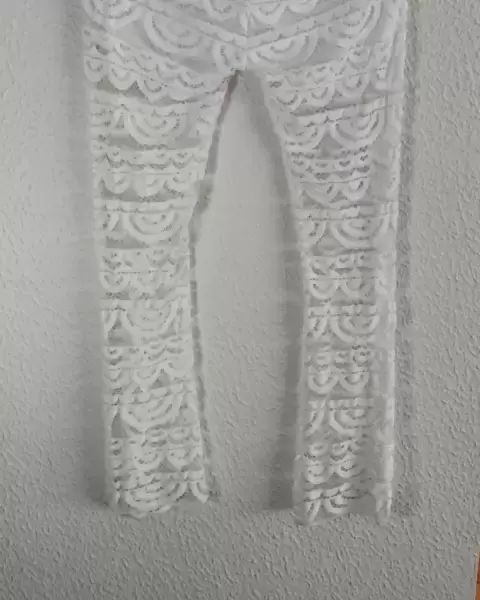 Pantalón de encaje con fondo tipo calzón largo. Pantalones blancos totalmente de encaje con forro tipo calzón medioIdeal para evento social Muy eleganteTambien se puede usar en playa y clima cálido Muy elegantes y bonitos