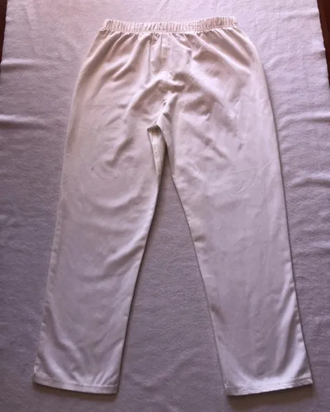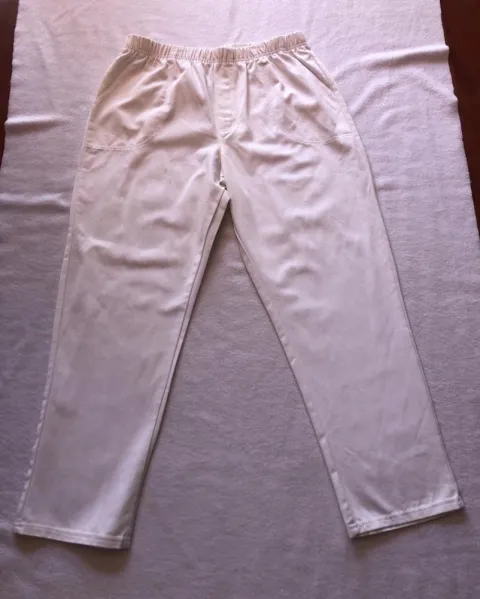 Pantalón de gabardina tiene bolsa y resorte en la cintura mide 83 cm y de tiro 35 cm