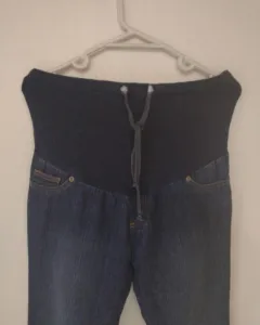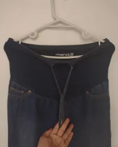 Lindo pantalón tipo mezclilla para embarazadas es totaemte largo el pantalón trae su bolsita en la parte de la pancita para que esté cómoda trae una cinta para ajustarlo es recto está muy lindo y cómodo para esa etapa del embarazo.