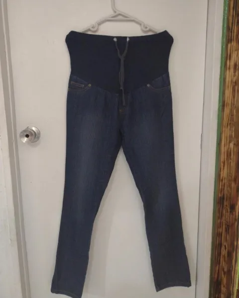 Pantalón de maternidad tipo mezclilla. Lindo pantalón tipo mezclilla para embarazadas es totaemte largo el pantalón trae su bolsita en la parte de la pancita para que esté cómoda trae una cinta para ajustarlo es recto está muy lindo y cómodo para esa etapa del embarazo.