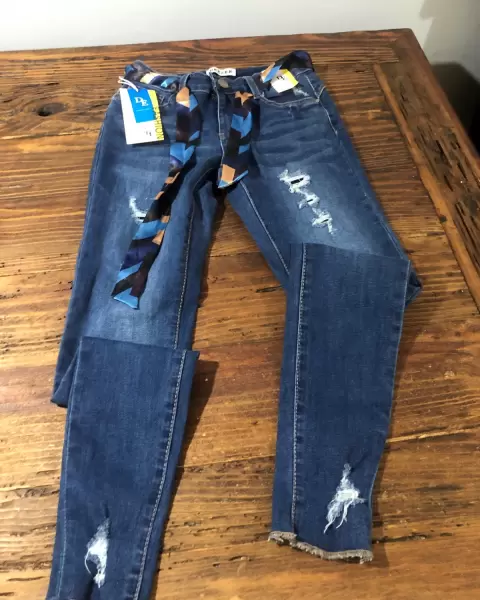 Pantalón de mezclilla. Pantalón de dama corte colombiano , levanta pompa , talla 7. Nuevo con etiqueta.