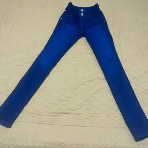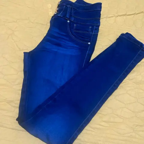 Bonito pantalón de mezclilla en color azul oscuro push up, tipo skiny, strech
