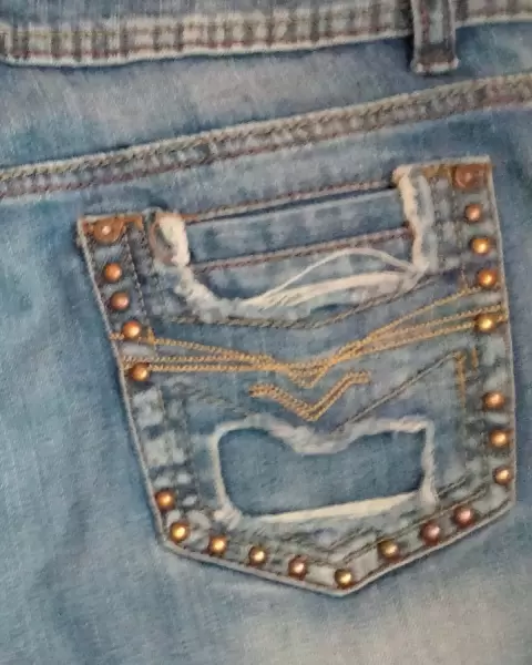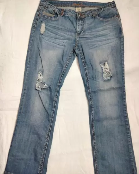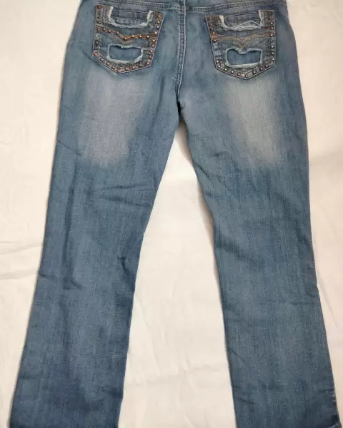 PANTALON DE MEZCLILLA EN MUY BUEN ESTADOTiene partes rotas porque así es el modelo.Tiene decoración en las bolsas traserasPantalón RECTOMuy bonito para seguirse usando