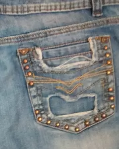 PANTALON DE MEZCLILLA MODERNO. PANTALON DE MEZCLILLA EN MUY BUEN ESTADOTiene partes rotas porque así es el modelo.Tiene decoración en las bolsas traserasPantalón RECTOMuy bonito para seguirse usando