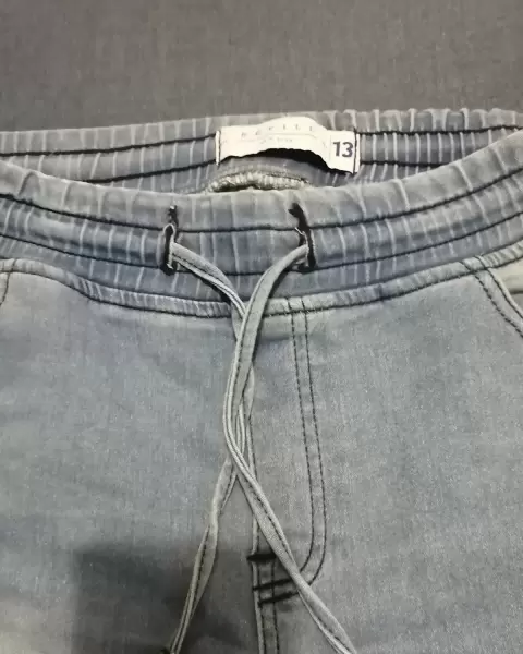 pantalón de mezclilla REFILL. pantalón talla 13 marca REFILL se encuentra en perfectas condiciones tiene jareta de ajuste en la cintura es tiró alto tiene bolsas trasera y delanteras