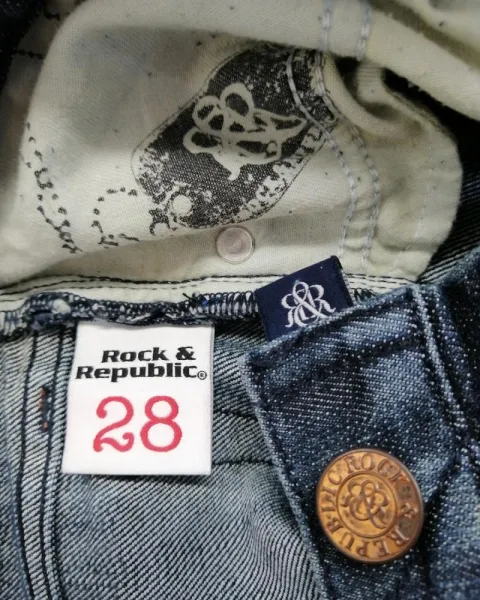Pantalon de mezclilla ROCK & REPÚBLIC. Hermoso pantalon de botaTalla 28Medida de cintura 40 centímetro linealesMedida de cadera 47 centímetros linealesSin detalle algunoTiene un poco de estrech