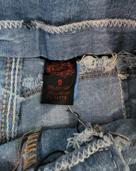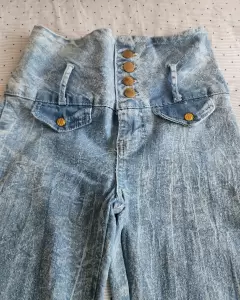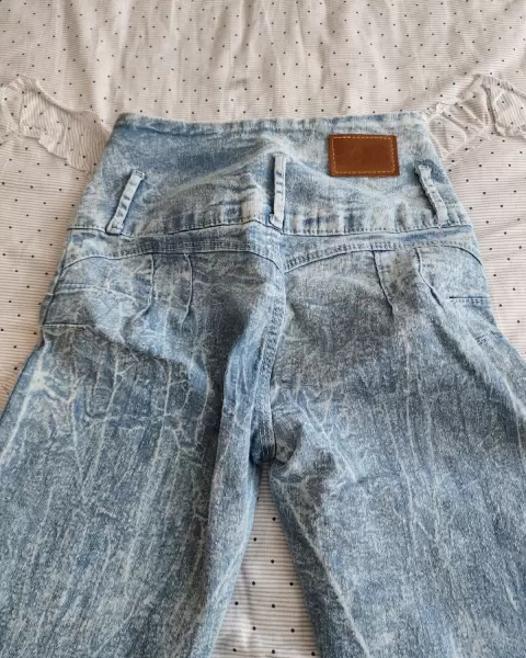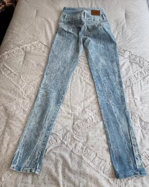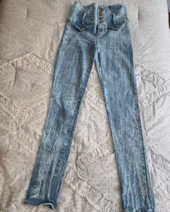 Pantalón de mezclilla deslavado skinny muy comodo y ajustable, con pinzas en la parte trasera para resaltar las pompis, de cintura alta con botones muy decorativos, sin bolsillos, en perfecto estadoTALLA S/M