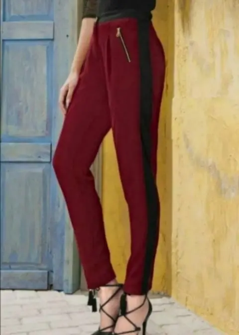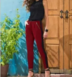 Pantalón de Moda!!!!. Pantalón color vino con frangas en los costados corlo negro, es nuevo, trae en la parte de atrás resorte y en la parte de adelante trae bolsillos.