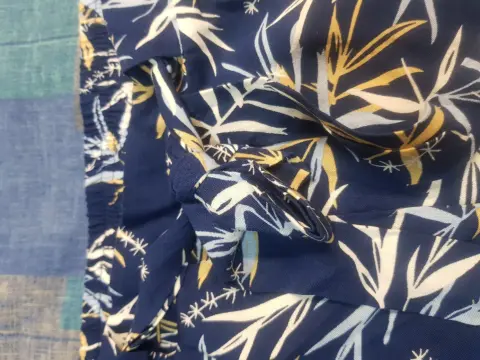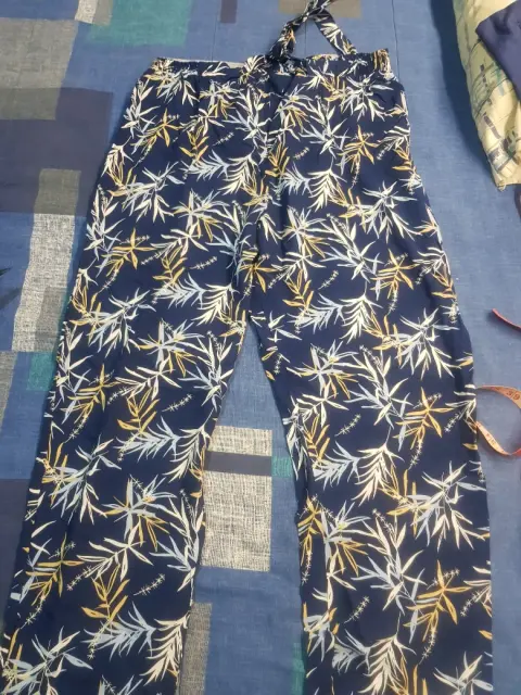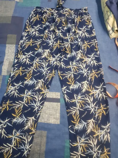 Pantalón fresco, con diseño de hojas , sin bolsas y resorte en la parte de atras .