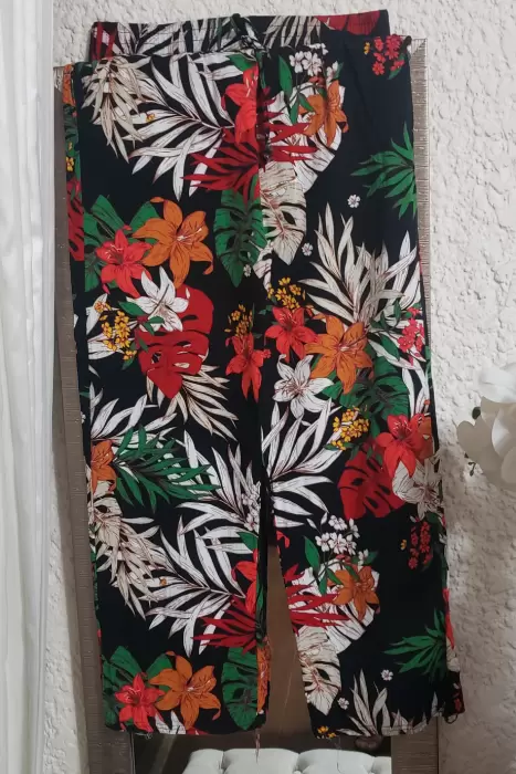 Pantalones tropicales unitalla , a la moda y frescos.Divinos y super cómodos, aunque son unitalla.Si eres demasiado delgada un XS si quedan un poco grande, por eso los vendo.