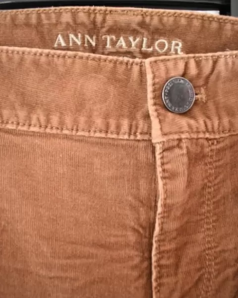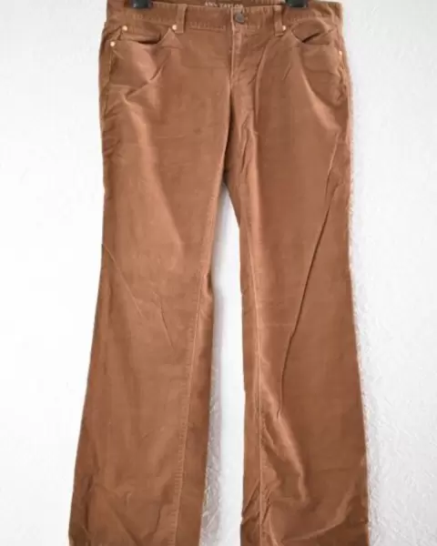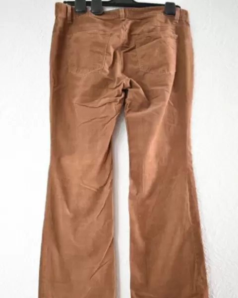 Pantalón de pana de tiro bajo, el corte es ligeramente acampanado y las cuatro bolsas son funcionales.