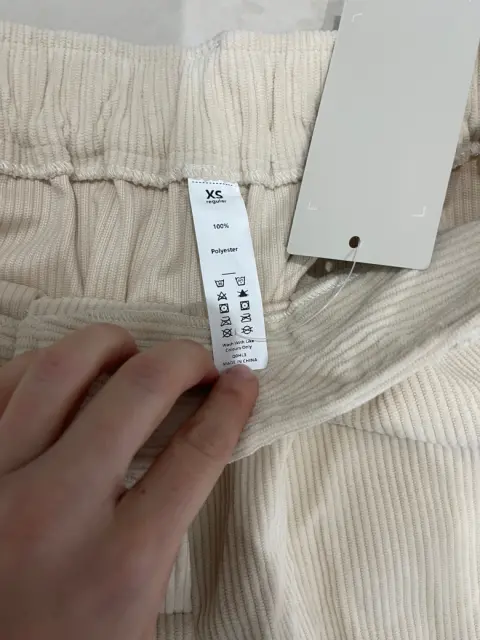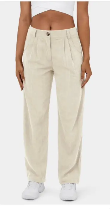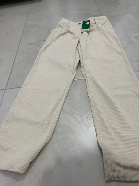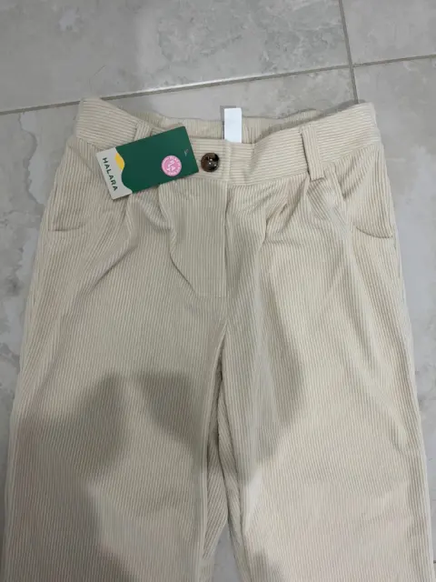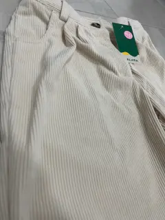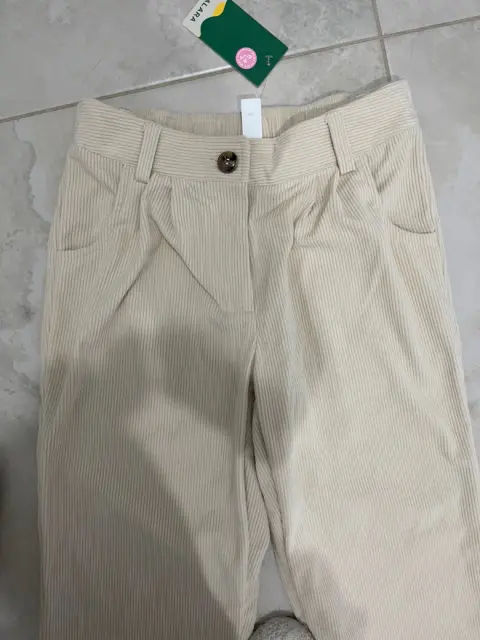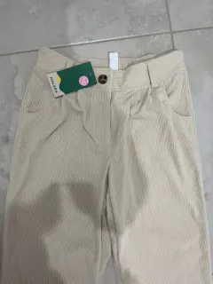 Pantalón de tiro alto de pana color beige con cierre adelante, nuevo