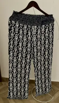 Pantalón de verano corte recto y resorte ancho a la cintura.Color azul marino, de tela estampada muy frescaMarca: Ellen WeaverTalla: LAcepto ofertas razonables!Cualquier duda, por favor escríbeme!
