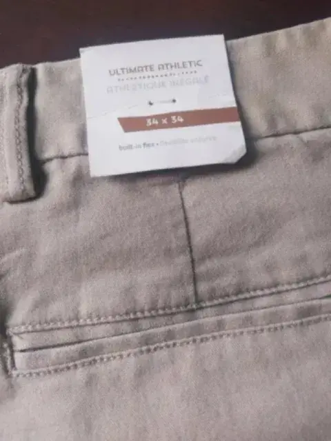 Pantalón de vestir. 👖De la línea Ultimate Athletic de Old Navy y con la tecnología Built-in Felx, es cómodo, práctico y durable. Lo puedes usar prácticamente para cualquier ocasión (trabajo o evento). Es un básico! OJO: Es para alguien alto ya qué de largo es talla 34x34. Este modelo tiene 5 bolsillos y está confeccionado con 98% de algodón así que te permite mantenerte fresco en esta temporada
