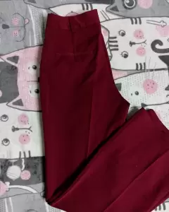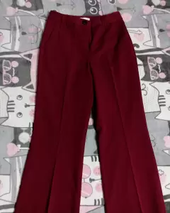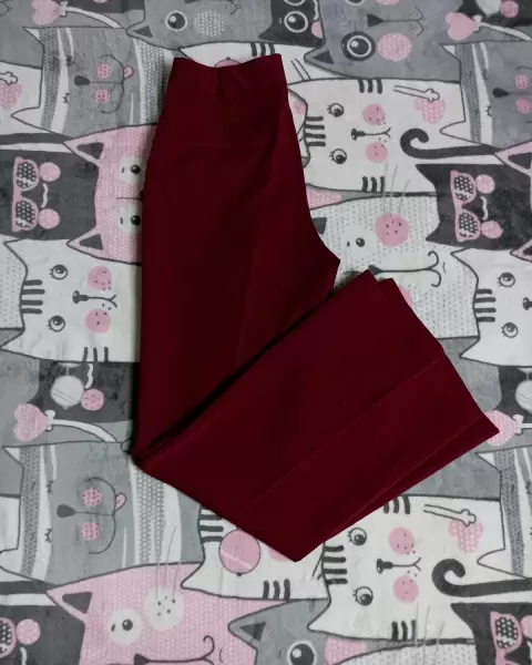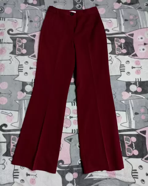 Pantalon de vestir color vino, ligeramente acampanado, talla 3Bolsas a los costados, en la parte trasera simula tener bolsa muy lindo.