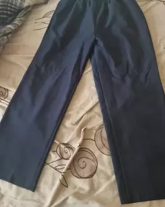 El pantalón tiene resorte .una bolsa en cada lado .color azul marino talla 44