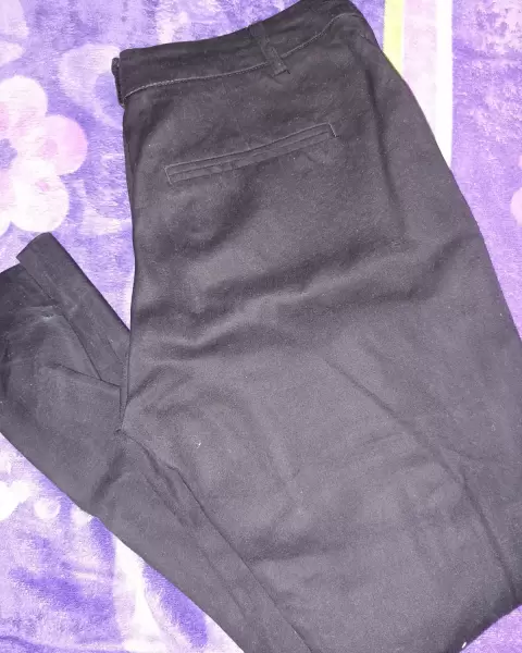 Pantalón de vestir negro en excelentes condiciones, por el flash no se aprecia bien el color pero es negro su color está al 100, no tiene ningún detalle, es talla 9 pero le queda mejor a 7