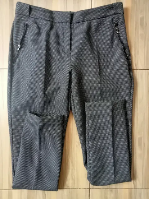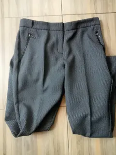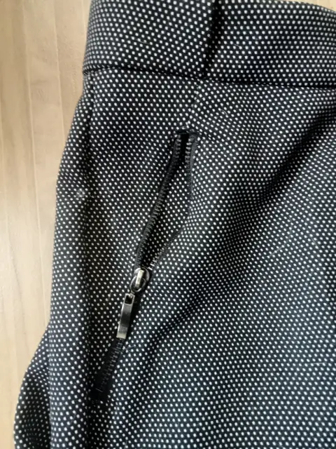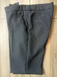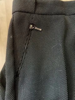 Lindo pantalón de vestir con puntitos pequeños. Sus bolsas delanteras tienen cierre. Está muy padre!!! Hace linda figura.