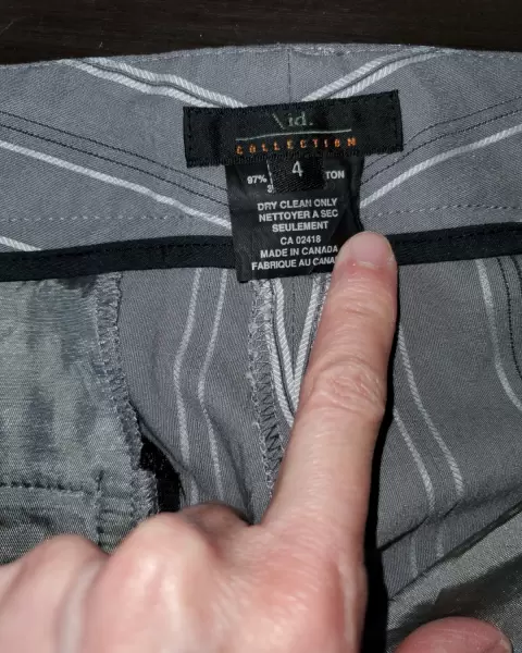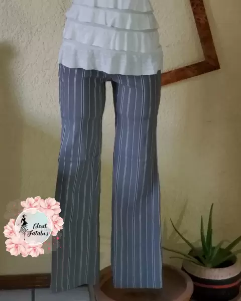 Pantalón tela fresca, corte recto con bolsas, ligeramente acampanado al final.Tela: 97% algodón y 3% spandexColor: Gris claro y rallas blancasTalla: 4 ( XS Hasta una S )arma muy padre.