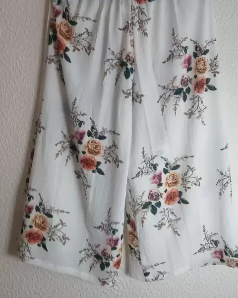 Pantalón de vestir blanco con estampado floralLos costados tienen abertura para que al caminar luzca la piernaMuy elegante, comodo y para toda ocasión Para la playa, clima cálido o evento elegante