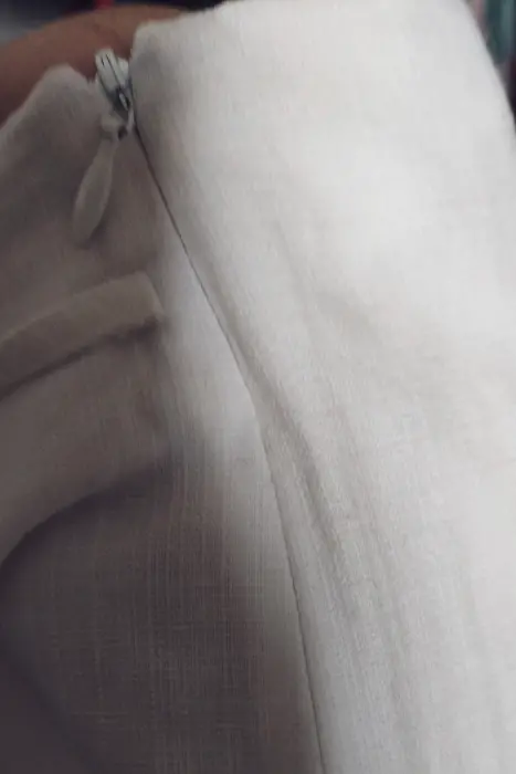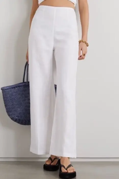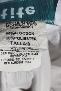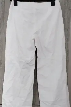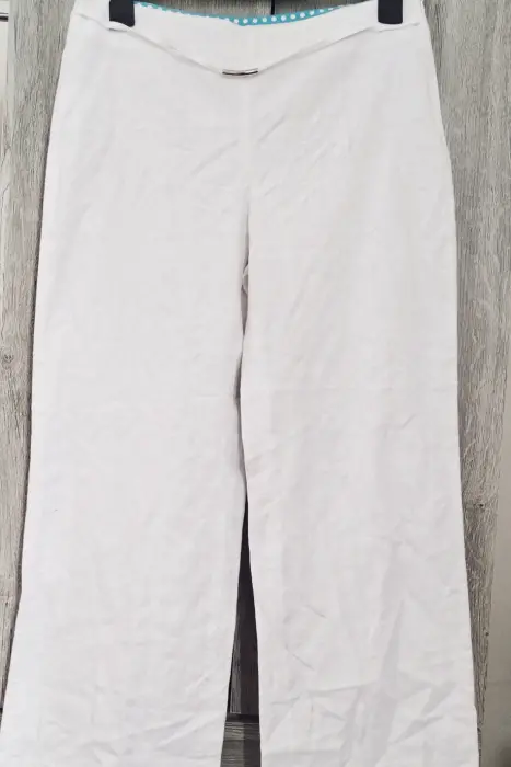 Pantalón talla 8 color blancoTipo de playa, es 80% algodón 20% poliéster (El pantalón no estira)Al parecer es largo acampanado a la caderaCierre por un lado.