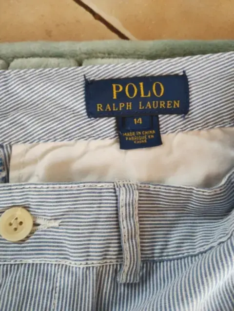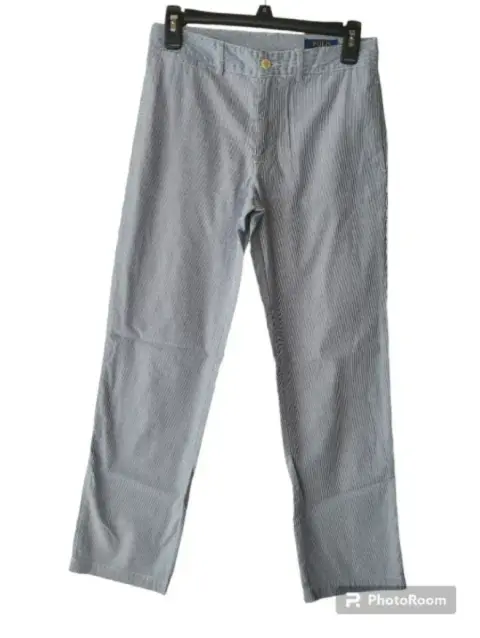 Pantalón azul claro rayas tenues blancasViene marcado en Talla 14 pero queda bien a talla S de caballeroMarca Ralph LaurenCasualEn perfecto estado sin algún detalleColor 💯Mide 35 cm de cintura44 cm cadera23 cm tiro92 cm largo18 cm ancho piernaEs corte recto