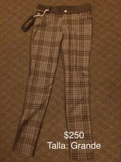 Pantalón de vestir cuadriculado. Pantalón estilo mallon de vestir por el frente es cuadriculado y por atrás liso de color café oscuro, talla grande o large, nuevo con etiqueta