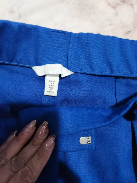Pantalon de vestir H&M corte masculino pinzas delanteras y bolsas al costado. Talla 8. Elastico trasero en cintura. Azul rey.