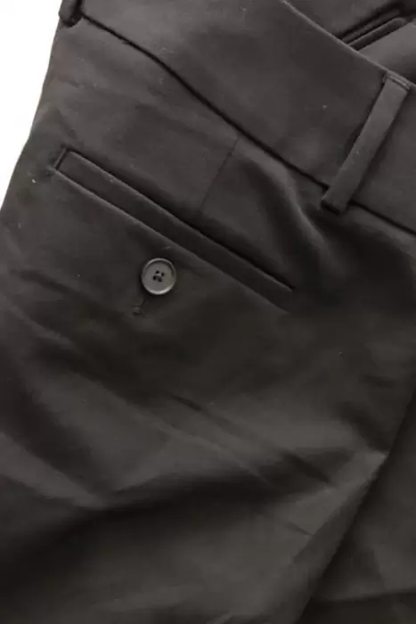 Pantalon negro de vestir, corte recto y amplio sin ser acampanado, viene con dos mini bolsillos enfrente y bolsillos con boton detras, trabillas para cinturon, boton y cierre. Dice talla cuatro, pero parece 6-7Medidascintura: 84 cmcadera: 96 cmlargo: 102 cm