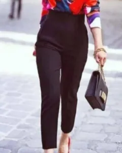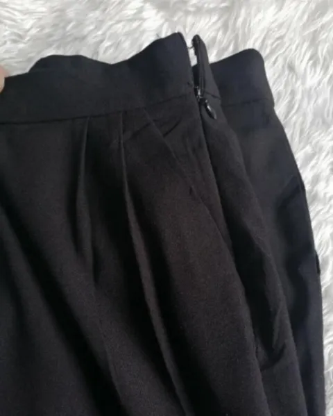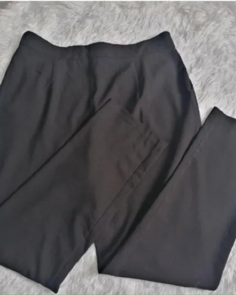 Bonito pantalón negro con pinzas muy marcadas en la parte de frente, tiro alto talla xl pero le voy más a una L , almoda muy bonito al cuerpo ,es tobillero ,perfectas condiciones sin ningun detalle.