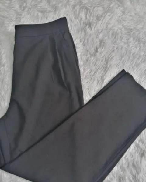 Pantalon de vestir tiro alto. Bonito pantalón negro con pinzas muy marcadas en la parte de frente, tiro alto talla xl pero le voy más a una L , almoda muy bonito al cuerpo ,es tobillero ,perfectas condiciones sin ningun detalle.