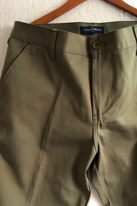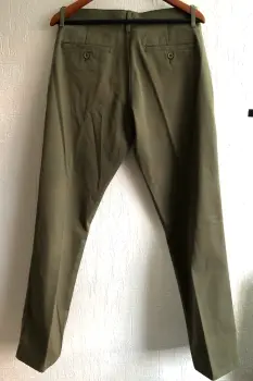 Pantalón de algodón color verde TALLA 33 de cintura y 30 de largoSuper cuidado, sin detalles, color olivo muy elegante.Corte rectolargo 106 cm