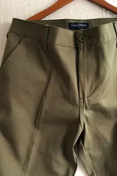 Pantalon de vestir verde olivo. Pantalón de algodón color verde TALLA 33 de cintura y 30 de largoSuper cuidado, sin detalles, color olivo muy elegante.Corte rectolargo 106 cm