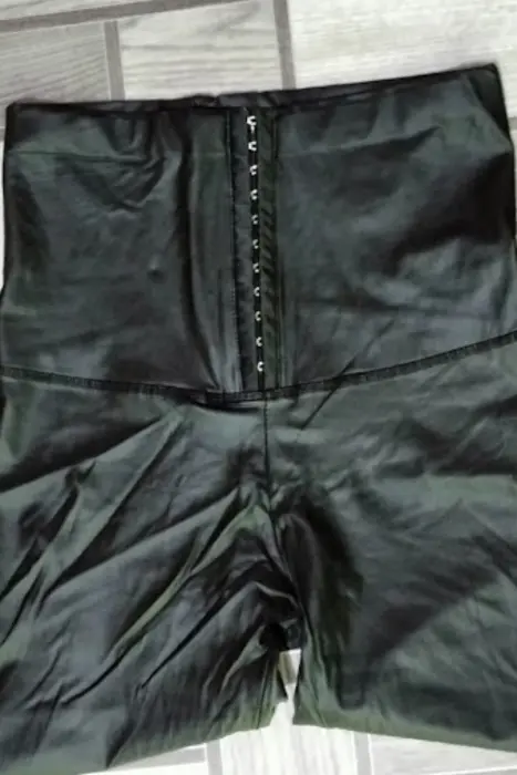 Pantalón de vinil color negro. Pantalón tipo leggings color negro con faja alta. Talla S/M que va bien para diferentes tipos de cuerpo.