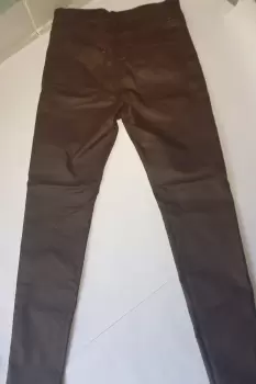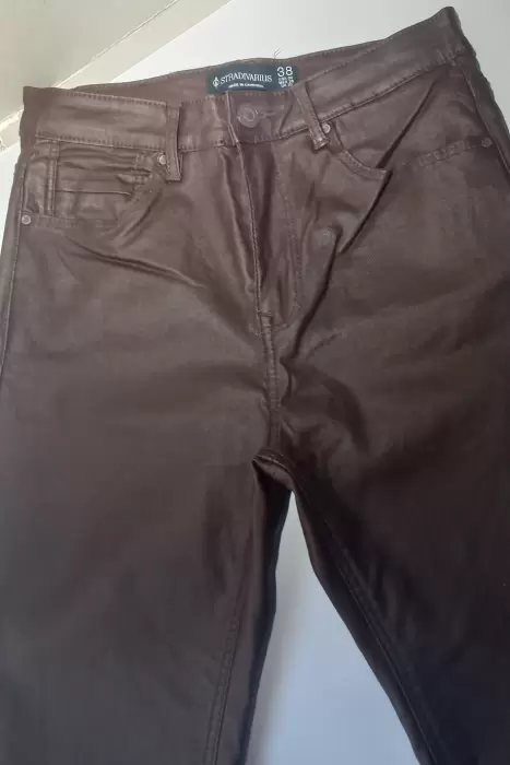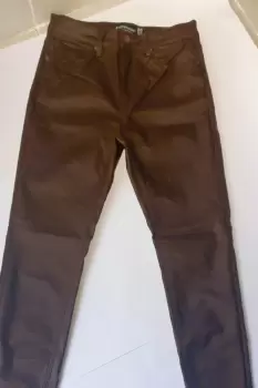 Hermoso pantalón vinipiel de tiro alto color vino, ideal para combinar con cualquier tipo de calzado y muchas combinaciones en outfit, la talla MEX es 28 y stretch.