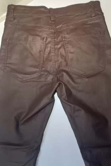 Pantalón de vinipiel color vino para dama. Hermoso pantalón vinipiel de tiro alto color vino, ideal para combinar con cualquier tipo de calzado y muchas combinaciones en outfit, la talla MEX es 28 y stretch.