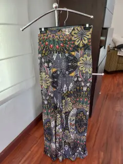 Pantalón estampado amplio y súper ligero, talla S. Sirve tanto para estar como y elegantecen un evento de día, como de noche