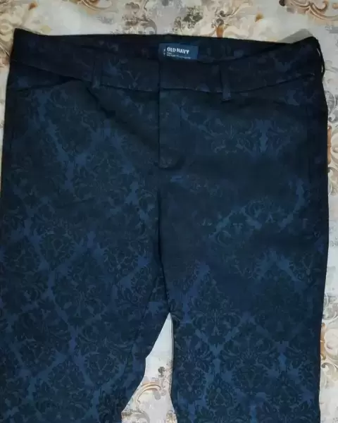 Pantalón estampado Old Navy. Pantalón talla 10 o regular mide en color azul el estampado es tipo encaje es de algodón, poly, spandex. Cintura45cm, Cadera 55cm y largo 95cm.