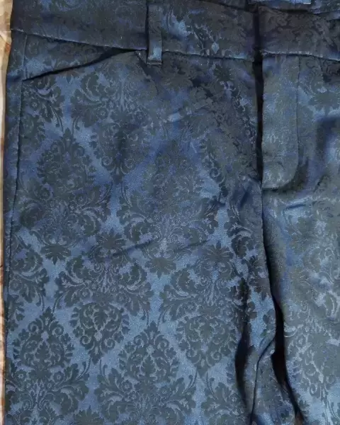 Pantalón talla 10 o regular mide en color azul el estampado es tipo encaje es de algodón, poly, spandex. Cintura45cm, Cadera 55cm y largo 95cm.
