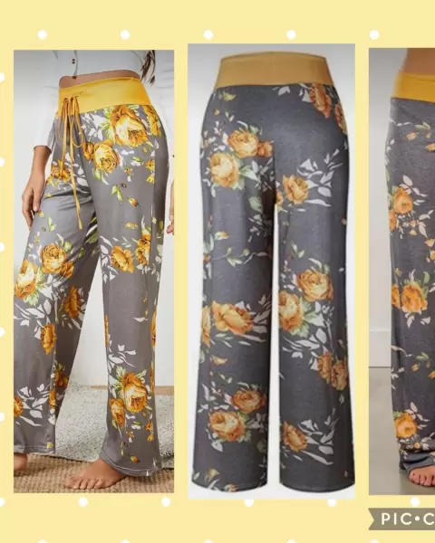 Pantalón floral pierna ancha. Divino! Súper cómodo, ligero. Tiene su cordon o jareta color gris. Mucho strech, pierna ancha, luce tal cual las fotos. Usalo para salir o rutinas de Yoga. Nuevo sin etiqueta. Queda tambien perfecto para M.