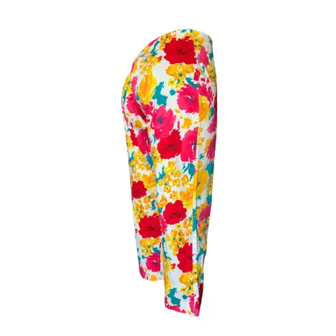 Pantalón floreado tiro alto. * 98% algodón, 2% spandex* Este pantalón 3/4 es perfecto para salir en días calurosos con blusas básicas para resaltar el pantalón* Cintura alta con control de abdomen: Este legging para mujer está diseñados para contornear tus curvas y optimizar tu forma con una cintura alta y ancha y control de abdomen.* Hecho en CanadáMarca: TribalTalla: 2XL/14