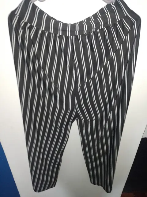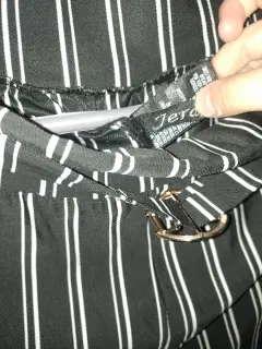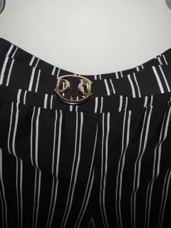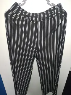 Tela tipo poliéster con Spandex,rayado con hebilla simulando cinturón, el tiro es largo