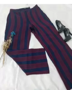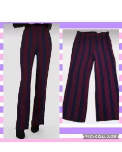 Nuevo con etiqueta!Para lucir bella, elegante y formal. De talle alto y pernera ancha. Con rayas anchas en tono vino con azul marino. No tiene strech. Tela 85% rayón y 15% polyester. Esta hermoso!Cintura: 43 cmCadera: 59 cmLargo: 120 cmCheca las medidas corresponden para un 2XL Y 3XL