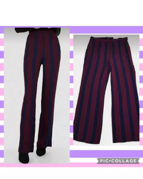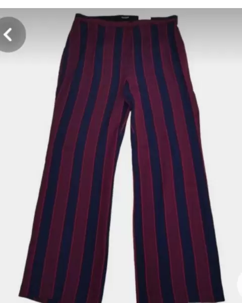 Pantalón formal a rayas. Nuevo con etiqueta!Para lucir bella, elegante y formal. De talle alto y pernera ancha. Con rayas anchas en tono vino con azul marino. No tiene strech. Tela 85% rayón y 15% polyester. Esta hermoso!Cintura: 43 cmCadera: 59 cmLargo: 120 cmCheca las medidas corresponden para un 2XL Y 3XL