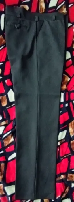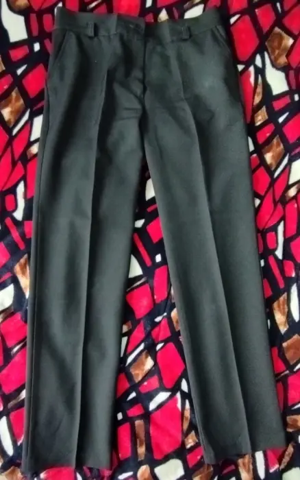 Pantalón de color negro, de tela formal. Corte recto. Talla 9