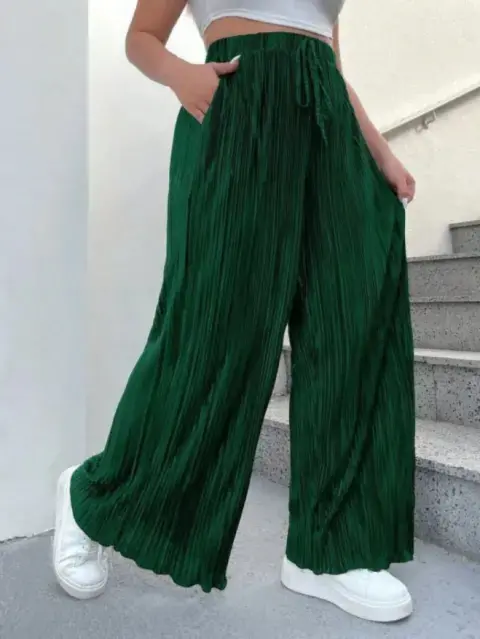 Pantalon fresco. Pantalon de pierna ancha con brillitos super bonito con cordón ajustable SIN BOLSAS la primera imagen es como de referencia