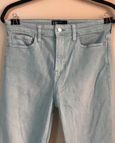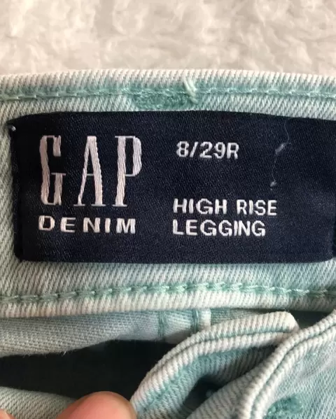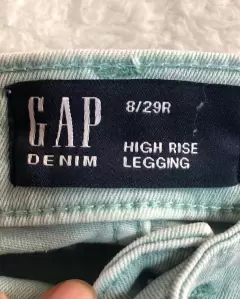 Pantalón GAP High Rise Legging. Pantalón estilo legging high riseColor mentaMarca GAP DENIMTalla 8/29R91% algodón, 7% poliéster, 2% elastanoMedidas aprox: cintura 78cm, tiro alto, largo 99cm